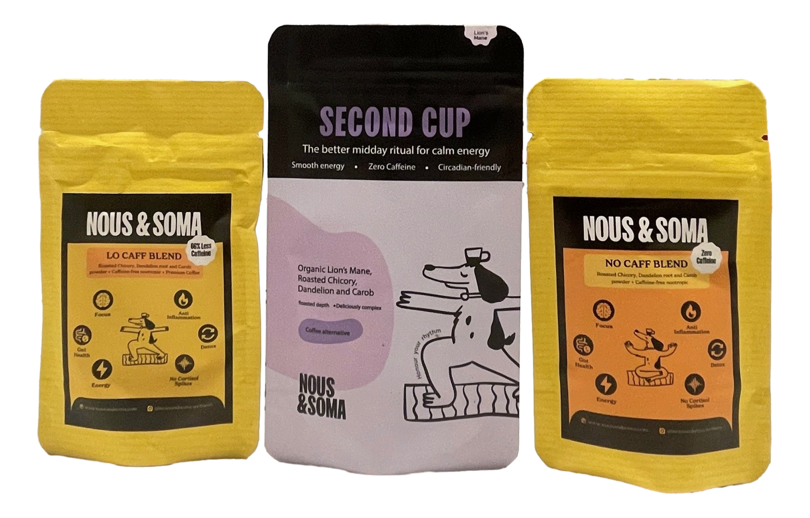 "5 stars all around! I love the taste and smell of coffee, but I hate how it makes me feel on edge and dehydrated. I am so happy to have found Nous and Soma so I can enjoy my morning's cuppa without compromising my wellbeing. Fully recommend it!!"