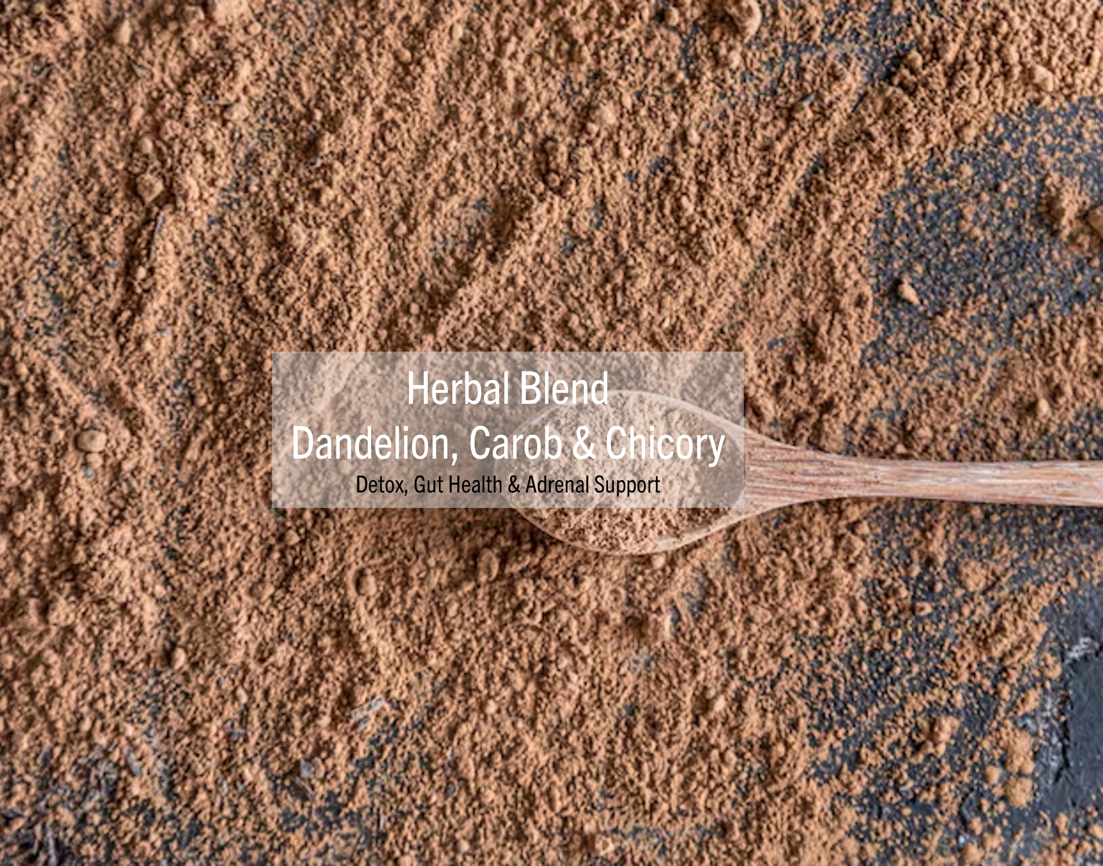 Dandelion, chicory, and carob support adrenal health by reducing stress-induced cortisol spikes and help balance adrenal function, promoting resilience against stress and provide steady energy, minimizing adrenal fatigue from caffeine or sugar highs.