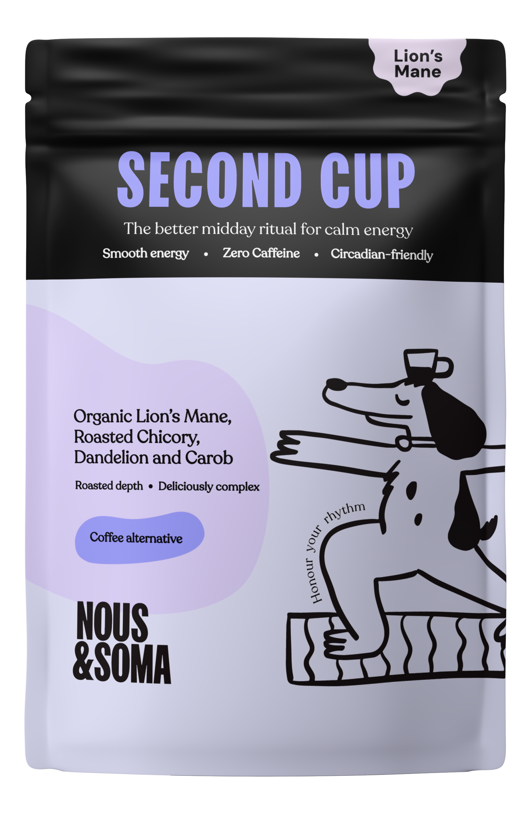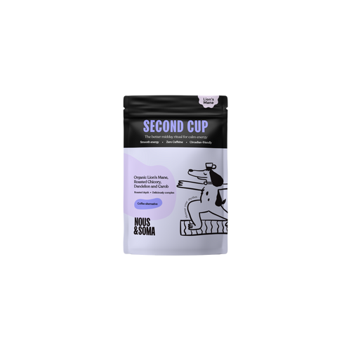 Second Cup is a roasted high fibre botanical ritual for modern energy - a bold blend of Lion's Mane balanced with roasted Chicory, Dandelion and Carob paired with other nutrients crafted to work with your rhytm, not against it.